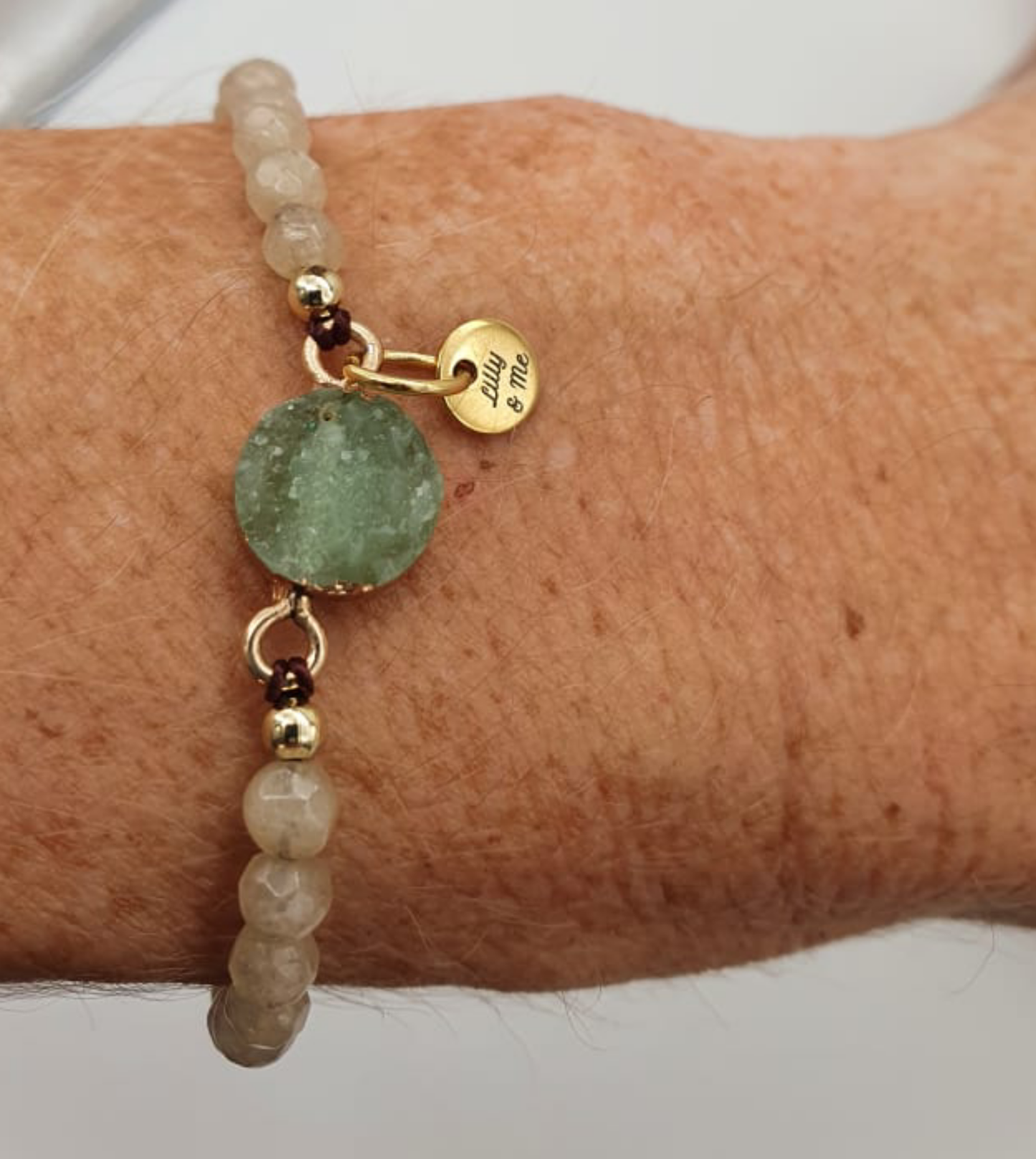 This is lovely Quartz Druzy bracelet that can adjust from 14cm to 24cm wide. IT truly goes with any outfit or any occasion.