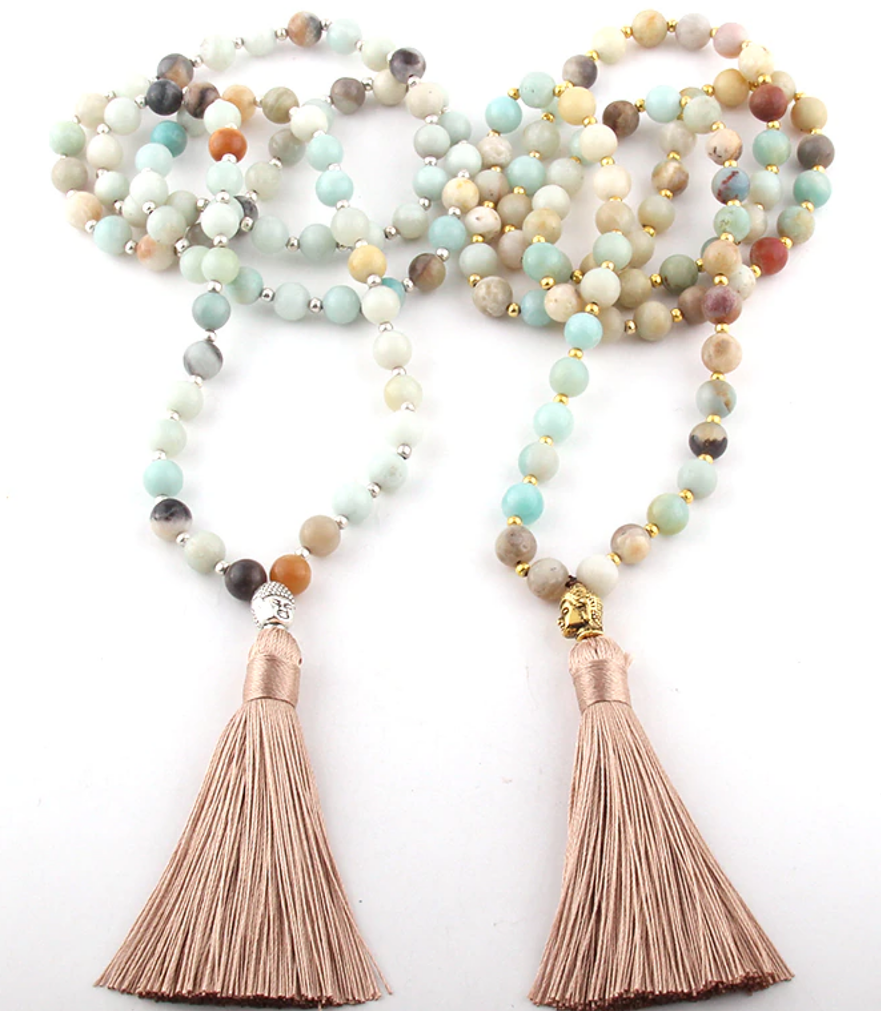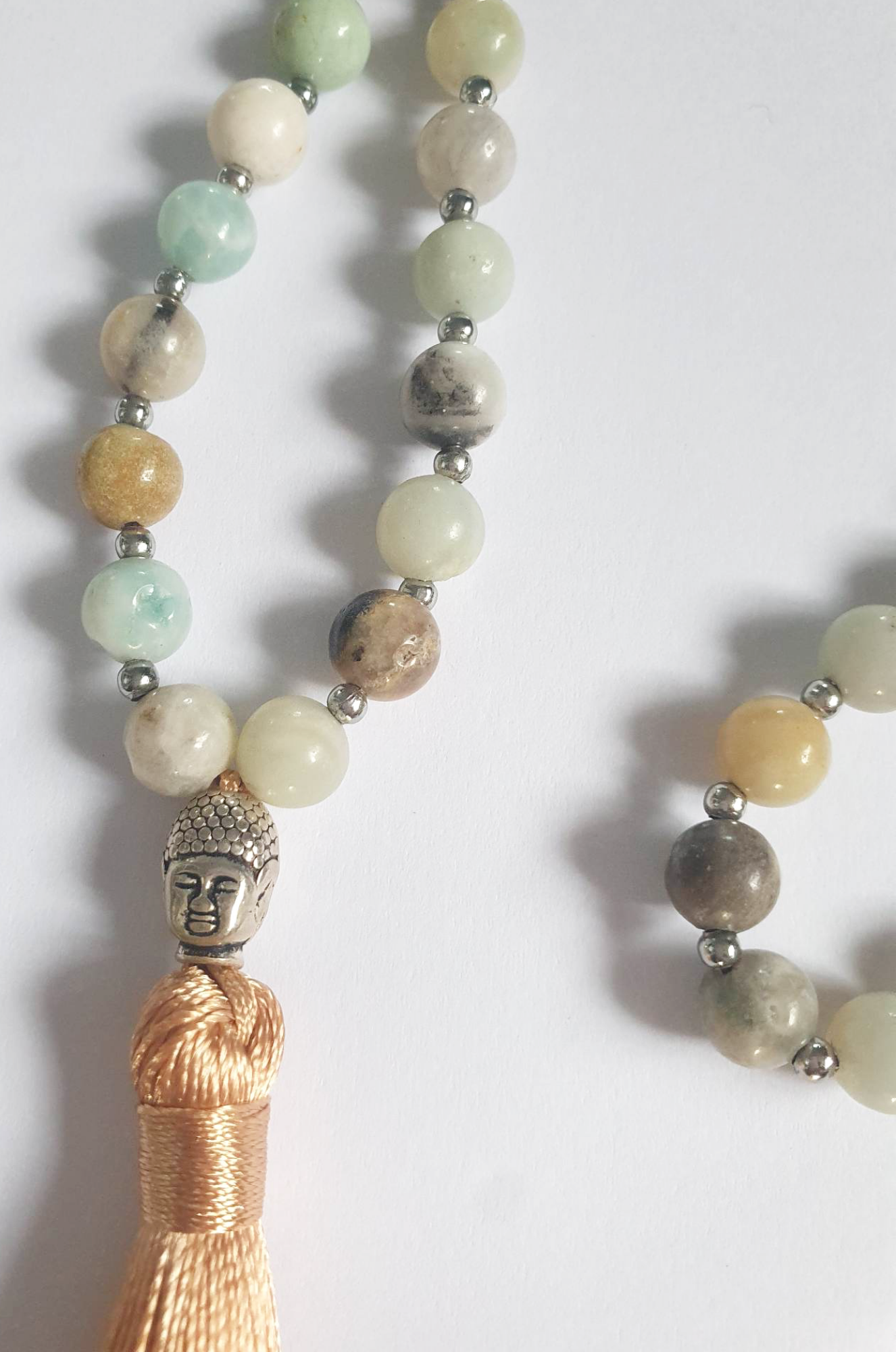 This is a beautiful Mala, it's nice and weighty, and the stones are genuine. Choose Silver or Gold.