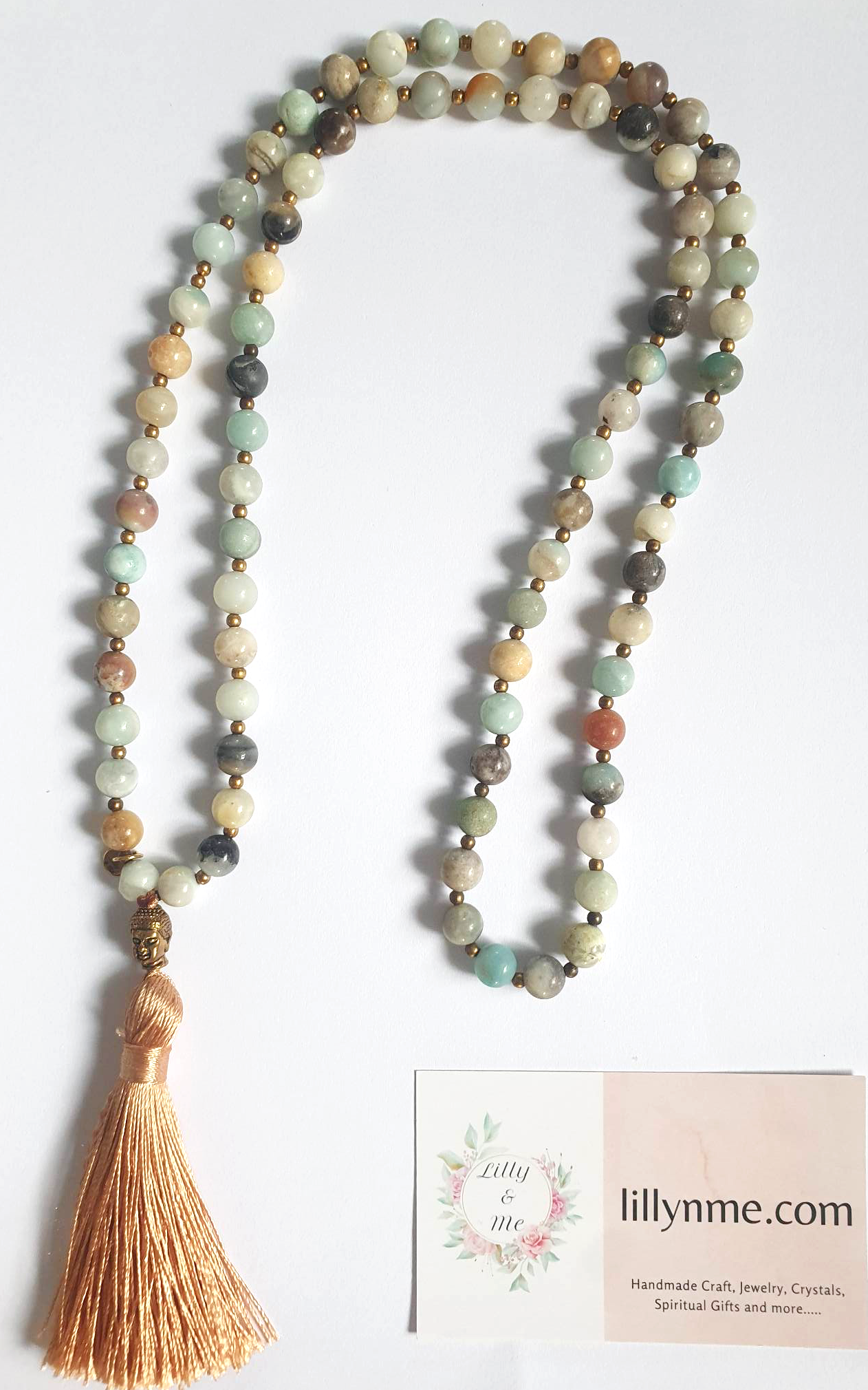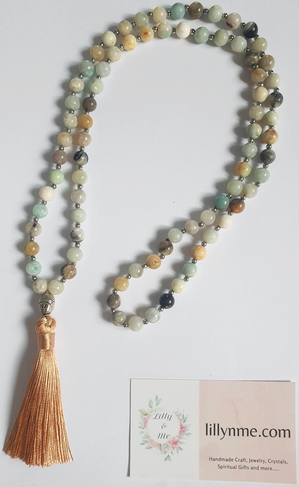 The mala measures an approx 43.5cm drop, 53cm drop including the tassel.