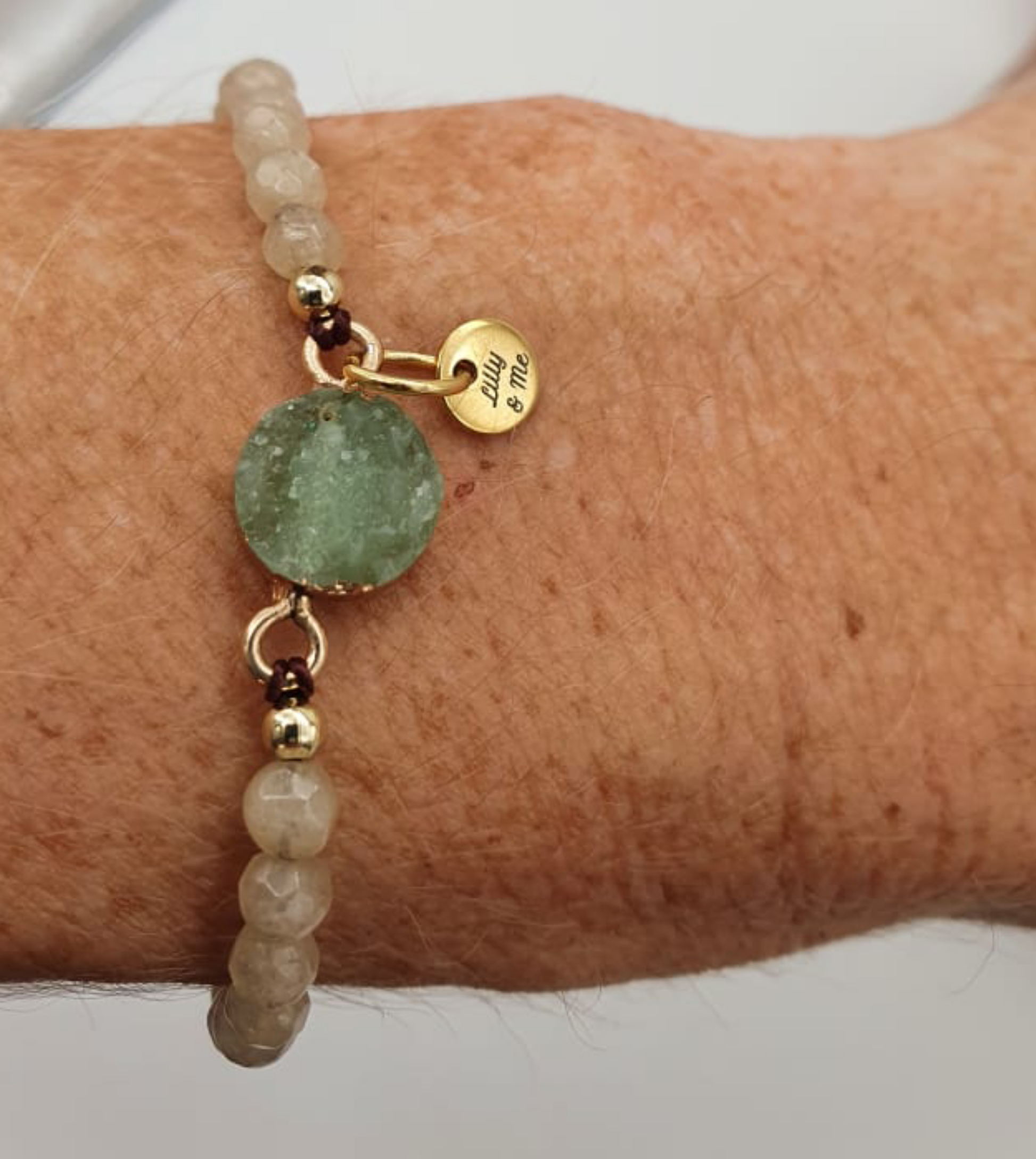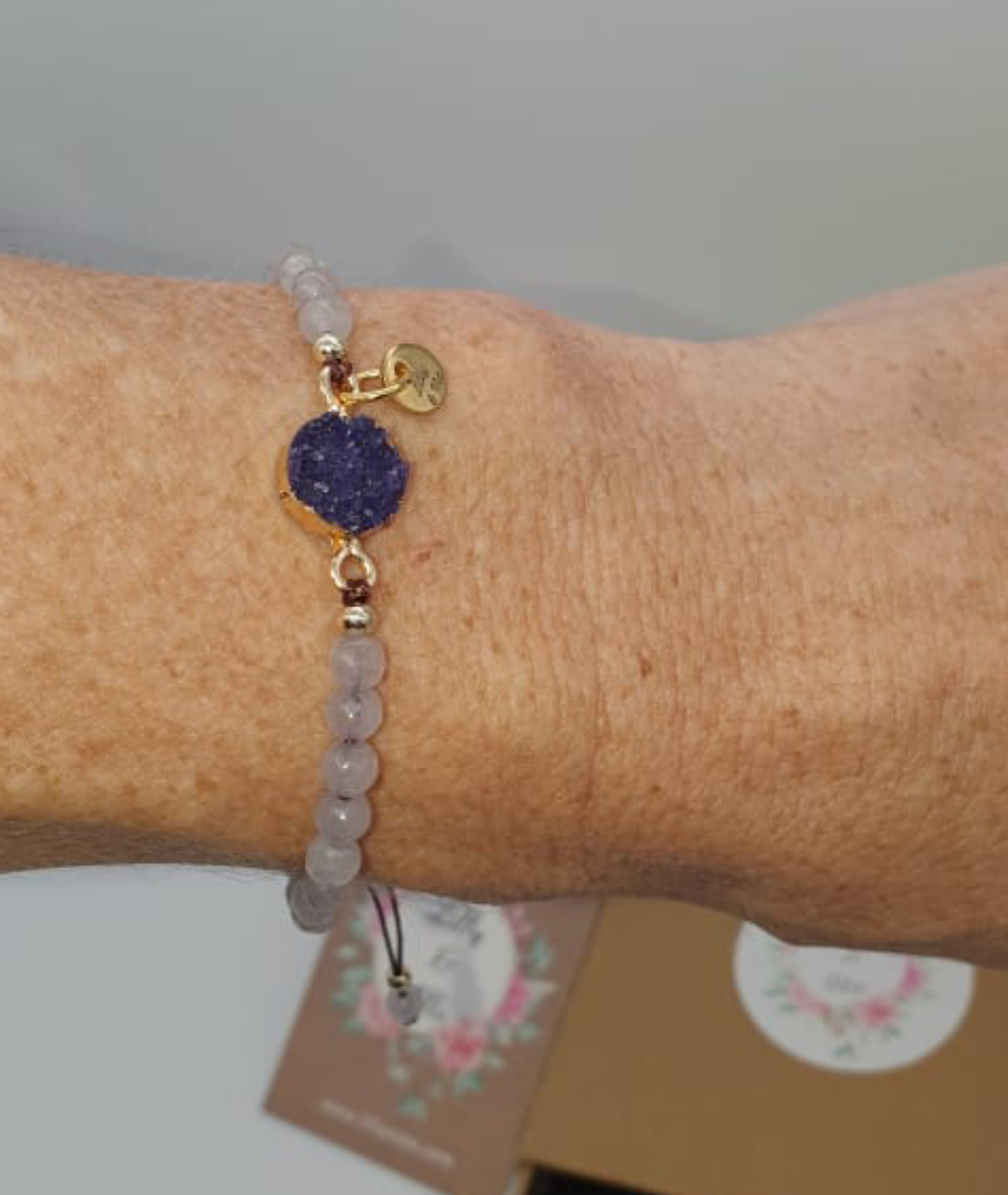 This is lovely Quartz Druzy bracelet that can adjust from 14cm to 24cm wide. IT truly goes with any outfit or any occasion.