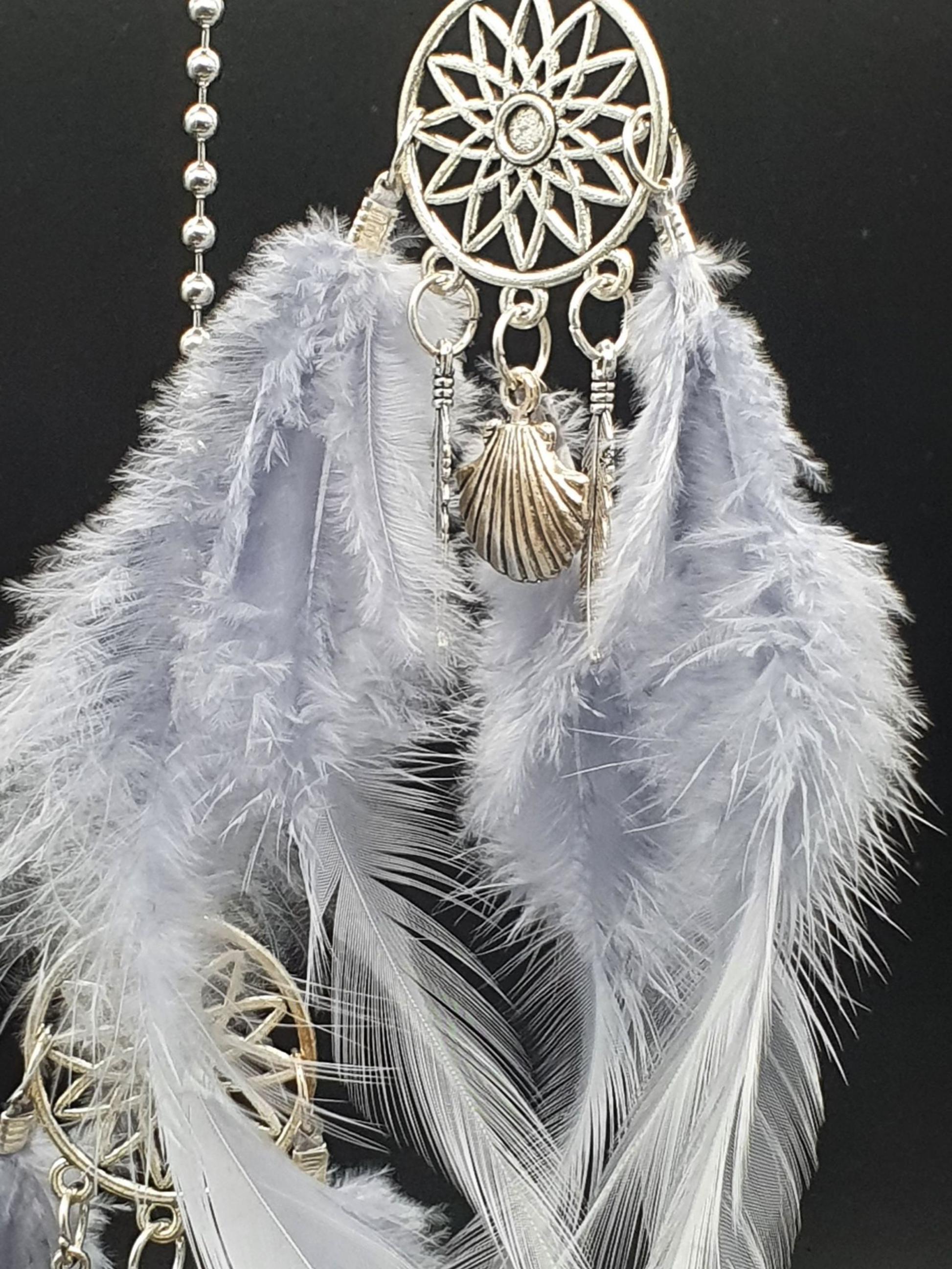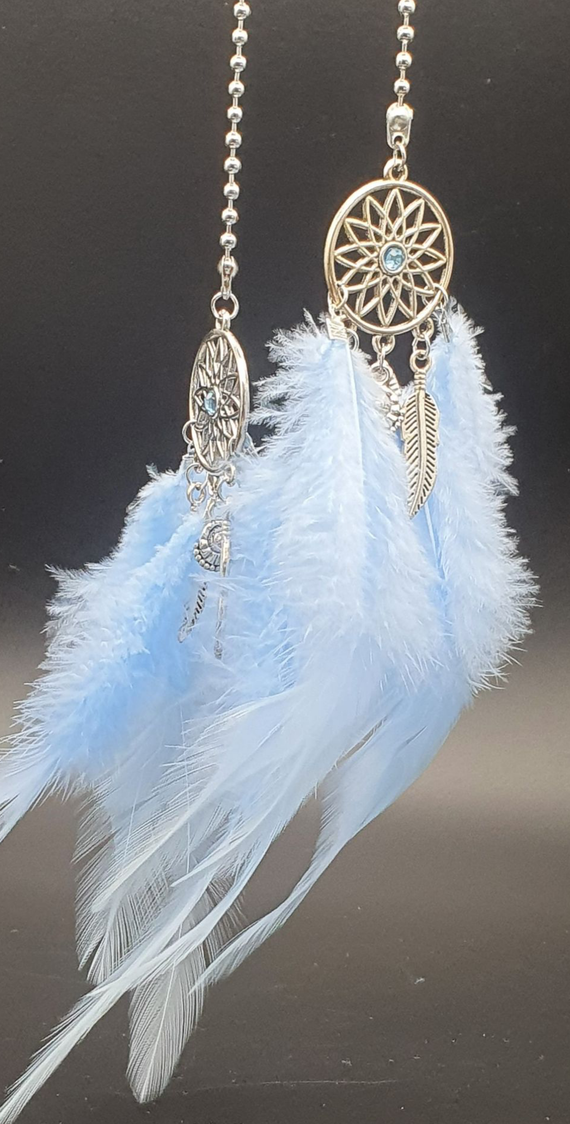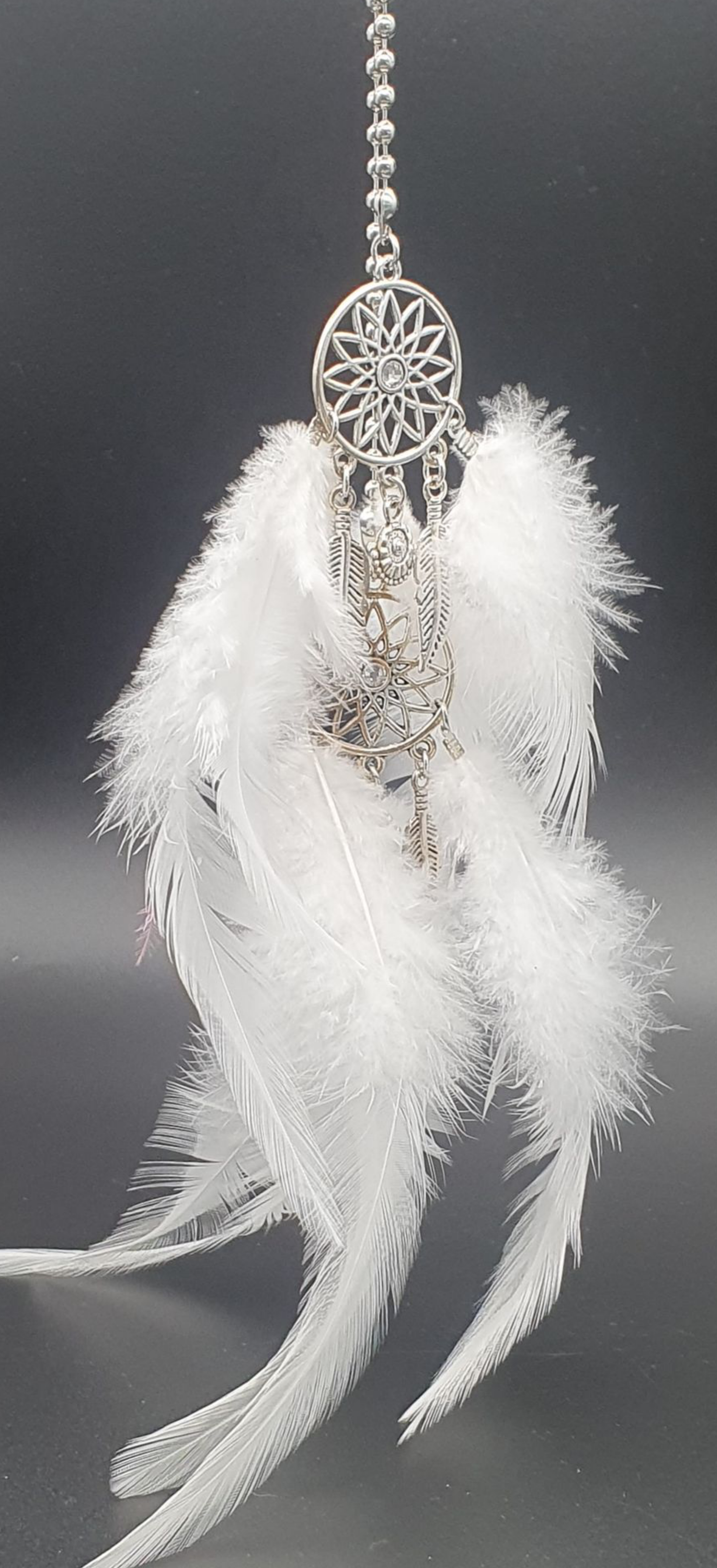 I have the white one hanging on my rear vision mirror in the car, they can go over anything and look great.