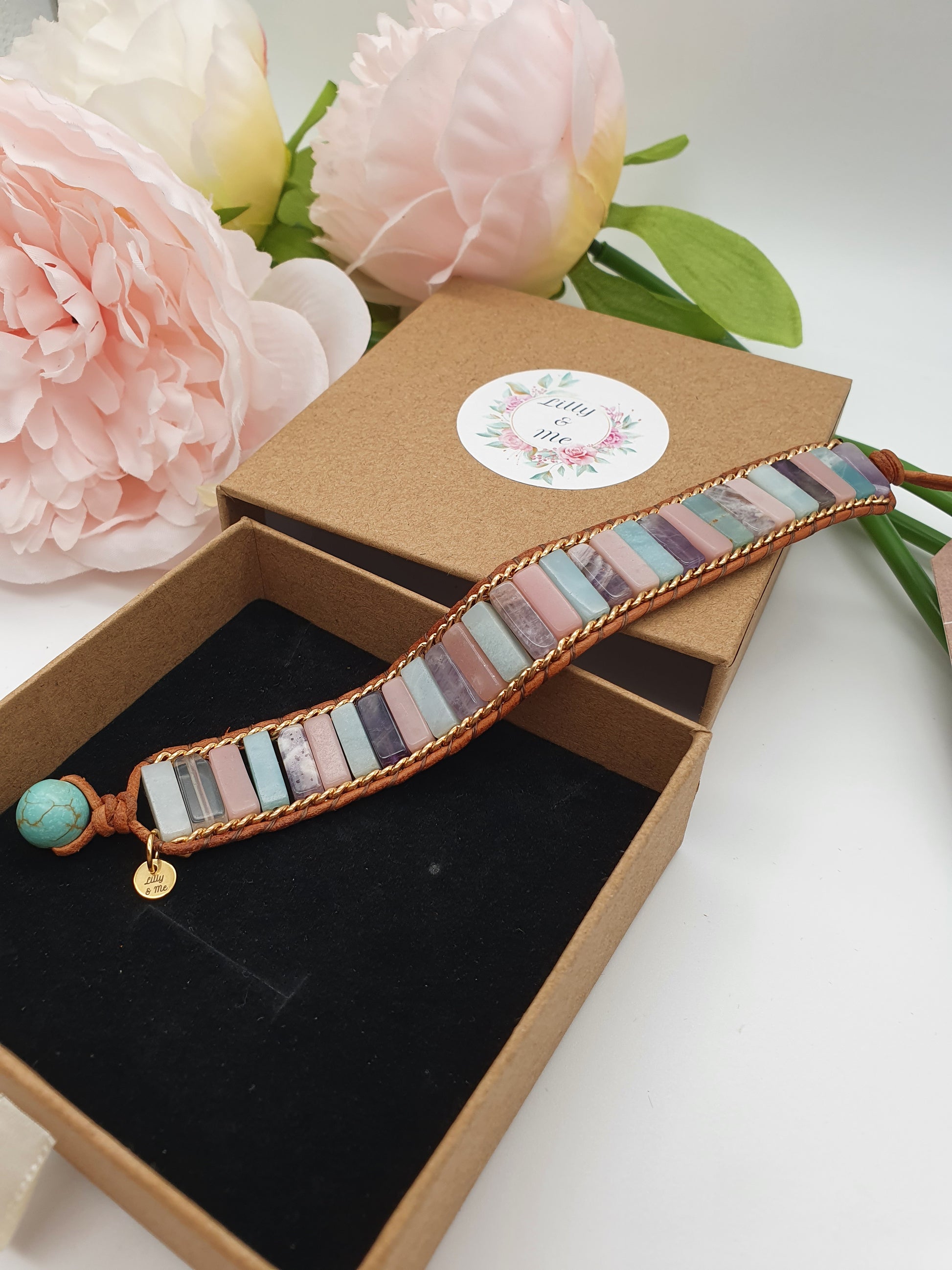 Jasper, Amethyst, Rose Quartz and Leather Bracelet